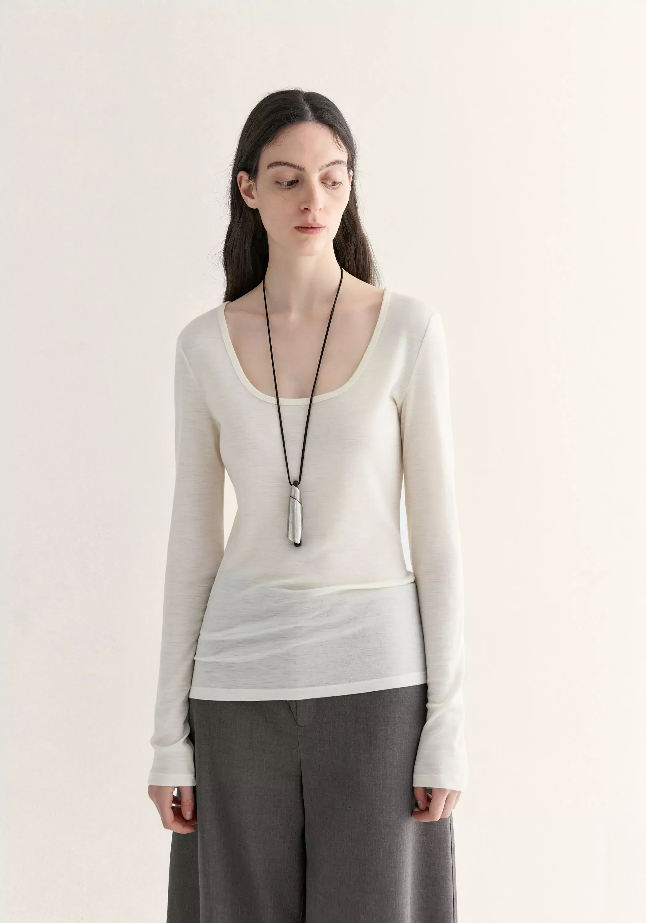 Merino Wool Ballet-neck Layering Top