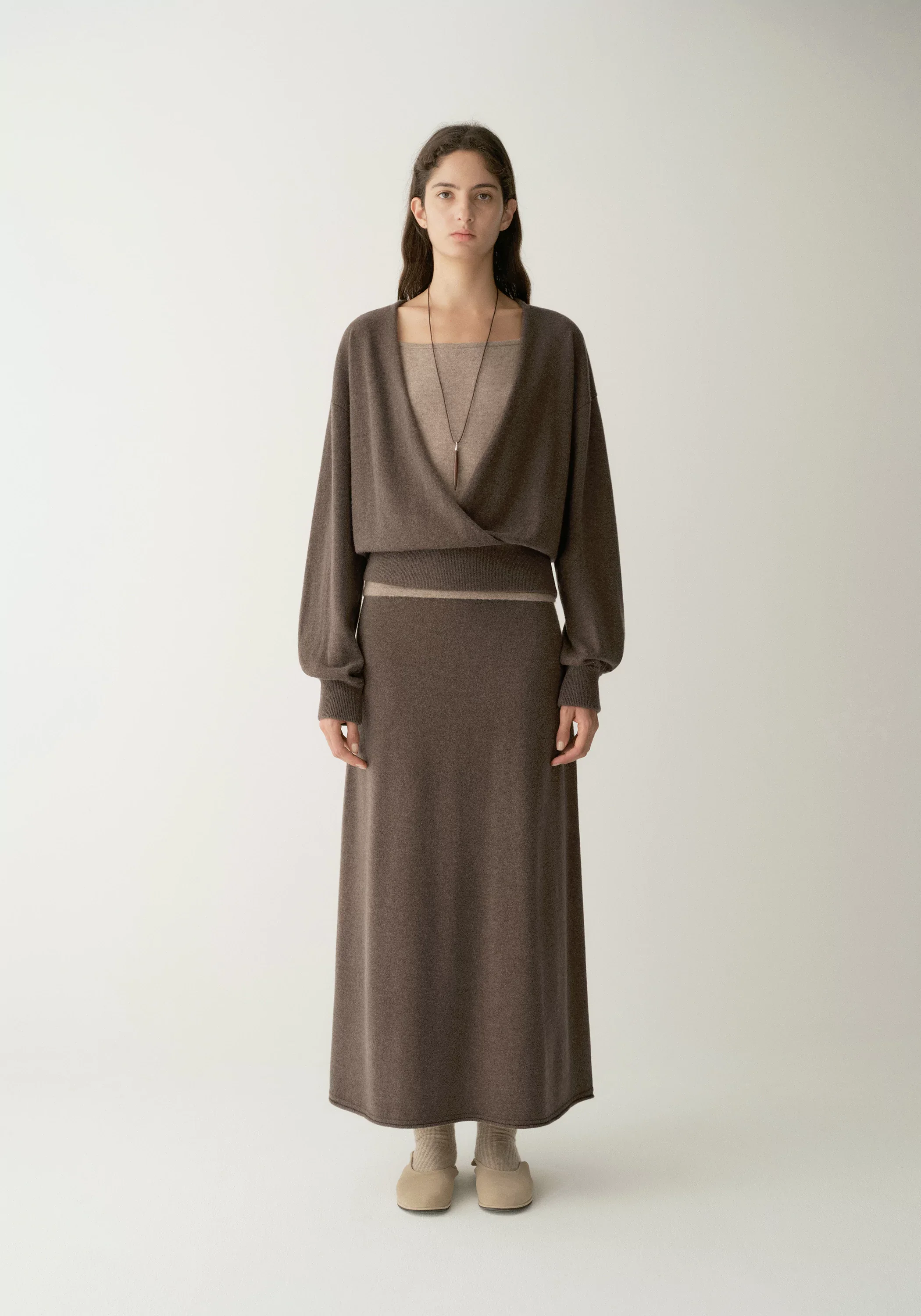 -70%Wool-cashmere Elastic-Waist Straight Midi Skirt—