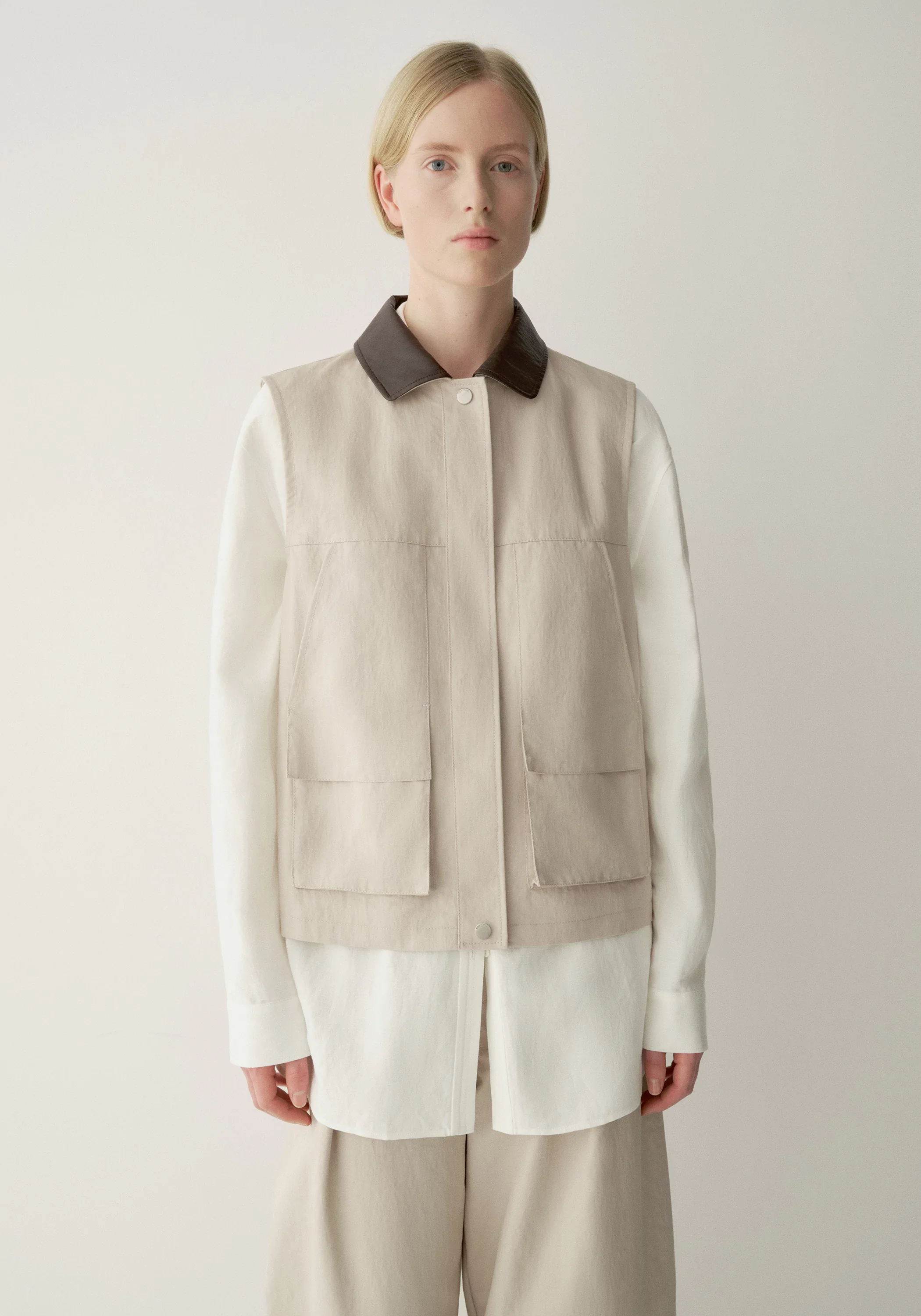Contrast-collar Coated Vest