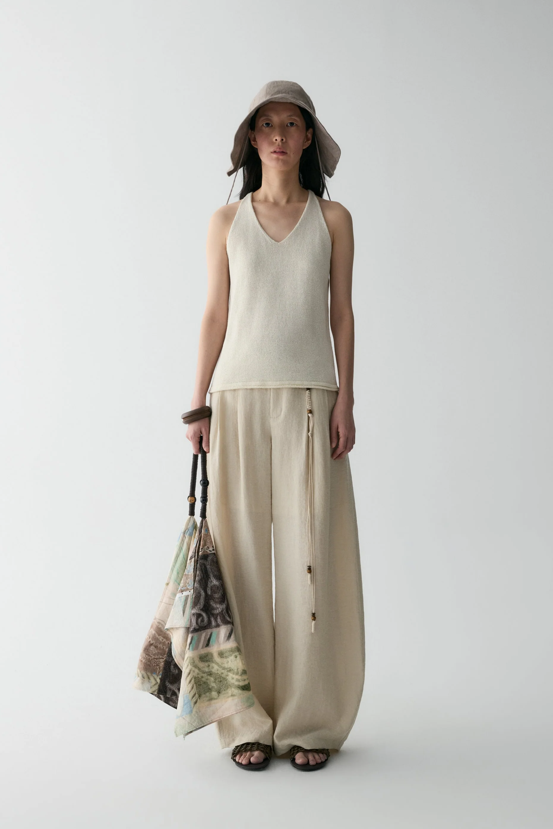 -70%Pleated Curved Linen Pants—